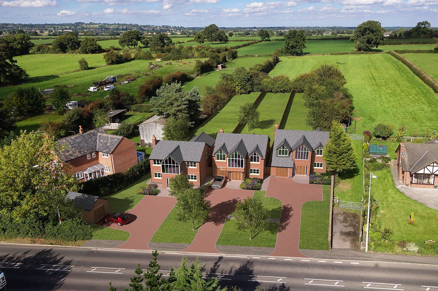 A combination of digitally produced images incorporated into a retouched & enhanced ground level or aerial drone photograph of the existing scene. Especially useful at the Planning and Design & Evaluation stage to visualise how the finished development will appear in relation to its surroundings, but also can be used later on for Marketing Purposes.